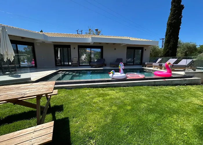 Nestled in the heart of Corfu, Villa Danai Gouvia offers a tranquil retreat just 15 km from Ioannis Kapodistrias Airport, making it an ideal sanctuary for both leisure and business travelers. Surrounded by lush gardens and scenic landscapes, this charming establishment combines modern comforts with traditional Greek architecture, creating an inviting ambiance. Strategically located, this gem of Gouvia is just a short distance from local attractions, charming villages, and vibrant nightlife, making it a perfect base for exploring the enchanting island of Corfu. With convenient transportation options nearby, including shuttle services to and from the airport, Villa Danai Gouvia is an ideal choice for travelers seeking both adventure and relaxation in this beautiful corner of Greece.